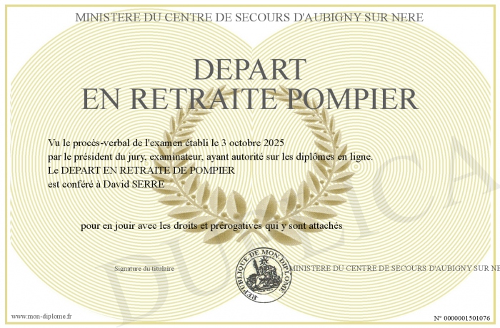 Envoyez par email votre DEPART EN RETRAITE POMPIER personalisé