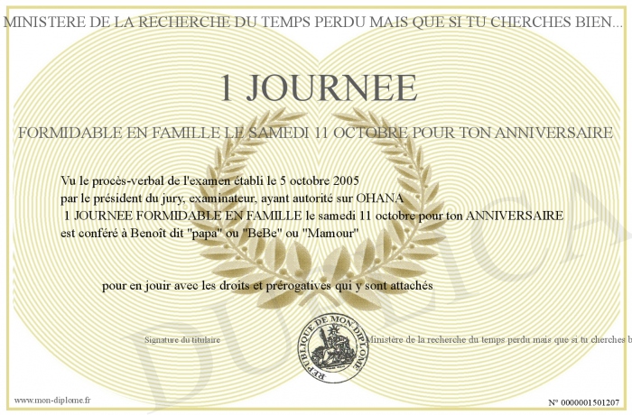 Envoyez par email votre 1 JOURNEE FORMIDABLE EN FAMILLE le samedi 11 octobre pour ton ANNIVERSAIRE personalisé