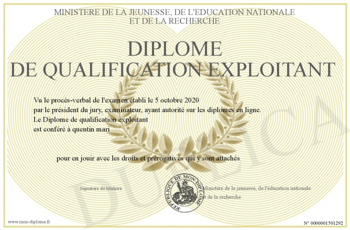 Envoyez par email votre Diplome de qualification exploitant personalisé