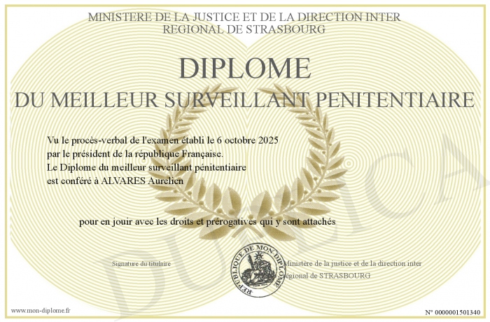 Envoyez par email votre Diplôme du meilleur surveillant pénitentiaire personalisé