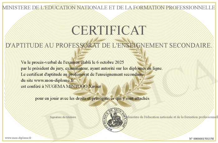 Envoyez par email votre certificat d'aptitude au professorat de l'enseignement secondaire. personalisé