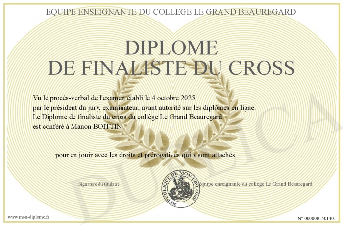 Envoyez par email votre Diplôme de finaliste du cross personalisé