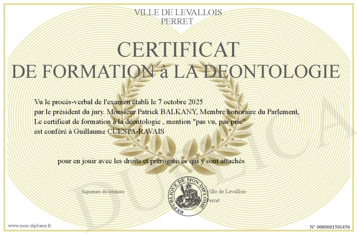 Envoyez par email votre certificat de formation à la déontologie personalisé