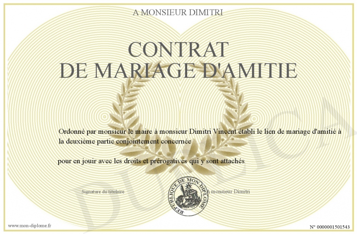 Envoyez par email votre contrat de mariage d'amitié personalisé