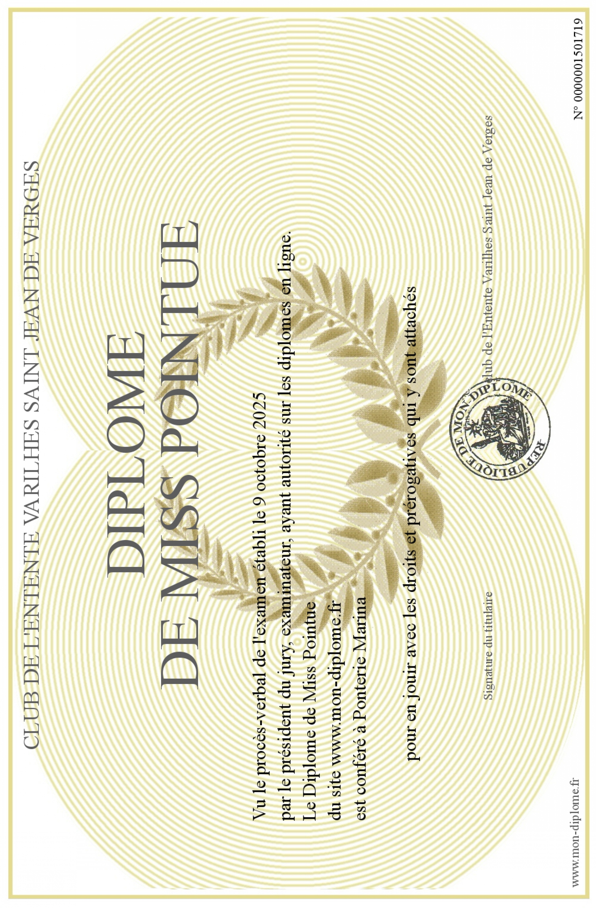 Envoyez par email votre Diplôme de Miss Pointue personalisé
