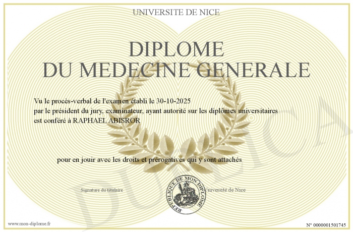 Envoyez par email votre Diplôme du médecine générale personalisé