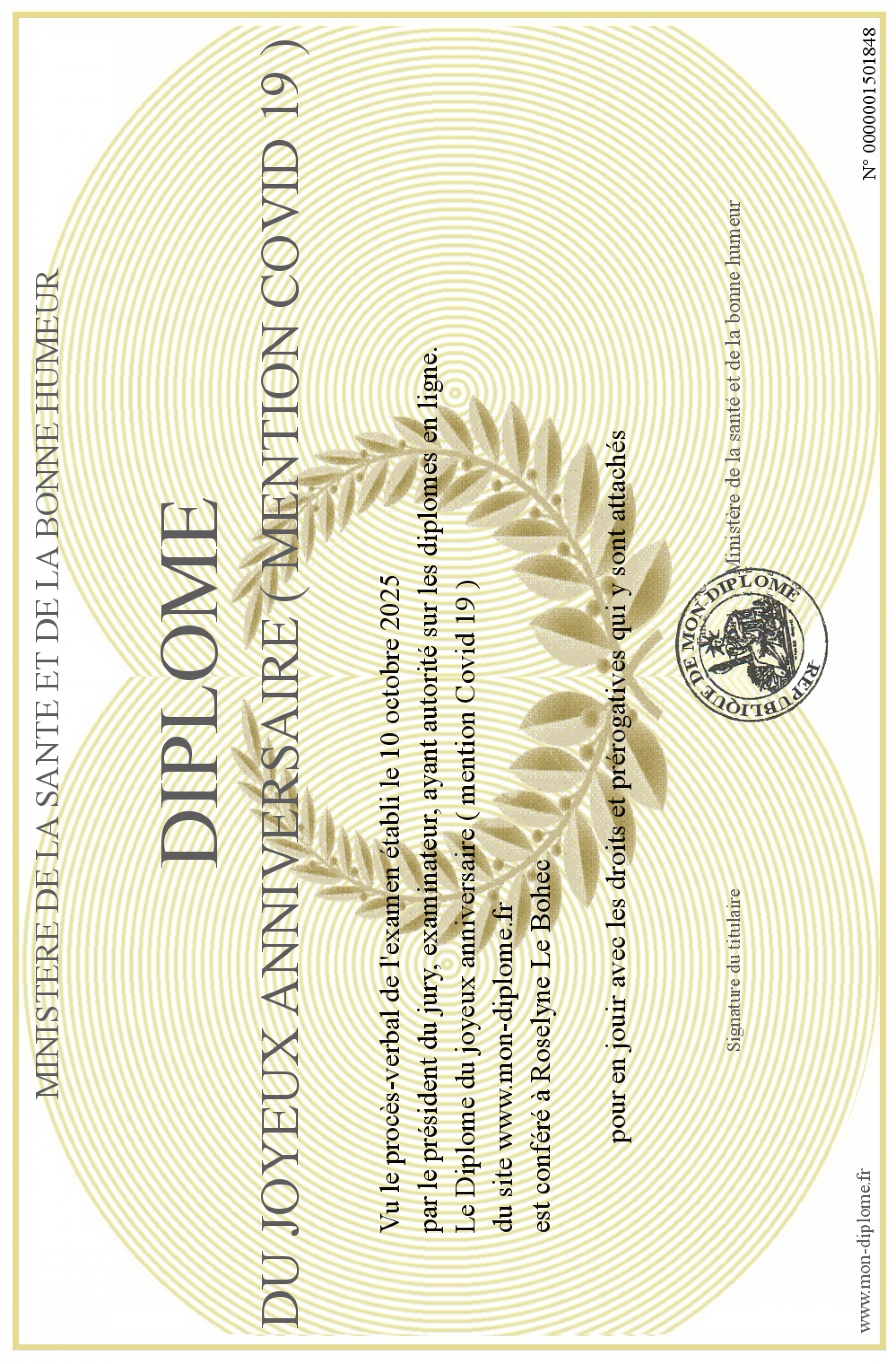 Envoyez par email votre Diplôme du joyeux anniversaire ( mention Covid 19 ) personalisé