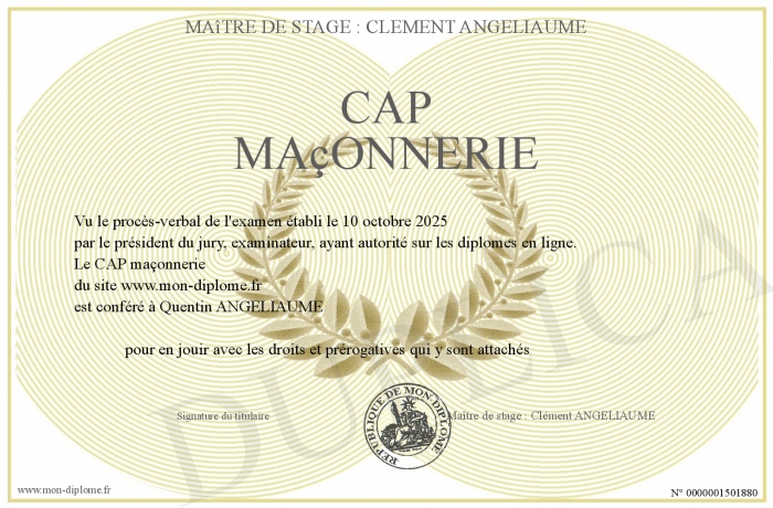 Pour demander la suppression du diplome affiché ci-haut, cliquez ici.