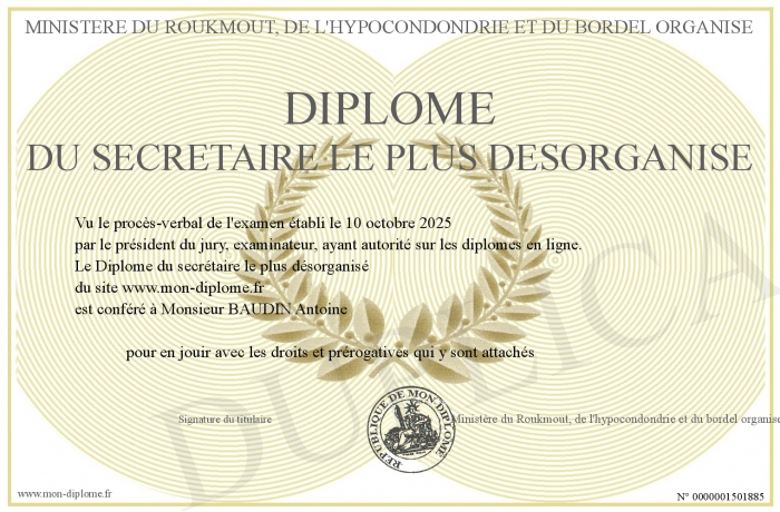 Envoyez par email votre Diplôme du secrétaire le plus désorganisé personalisé