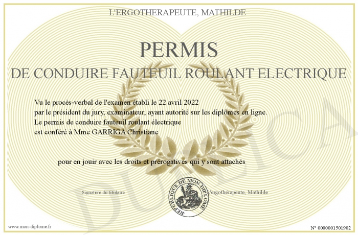 Envoyez par email votre permis de conduire fauteuil roulant électrique personalisé