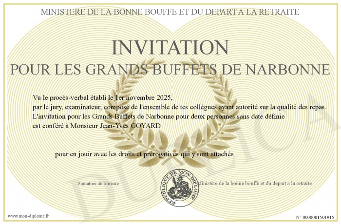 Envoyez par email votre INVITATION pour les Grands Buffets de Narbonne personalisé