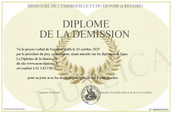 Envoyez par email votre Diplôme de la démission personalisé