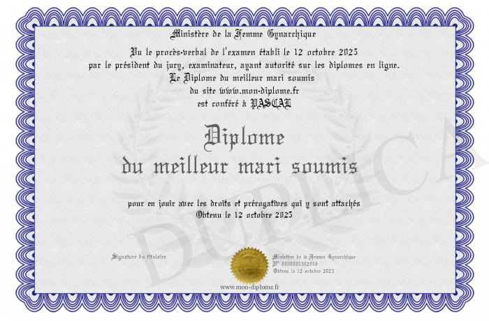 Envoyez par email votre Diplôme du meilleur mari soumis personalisé