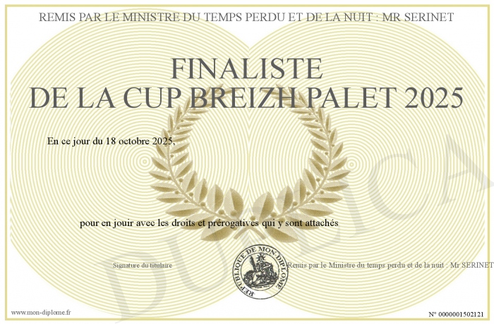 Envoyez par email votre FINALISTE DE LA CUP BREIZH PALET 2025 personalisé