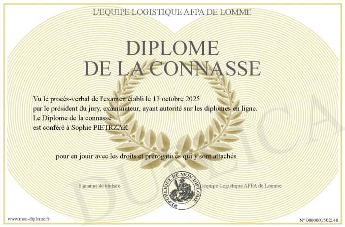 Envoyez par email votre Diplôme de la connasse personalisé