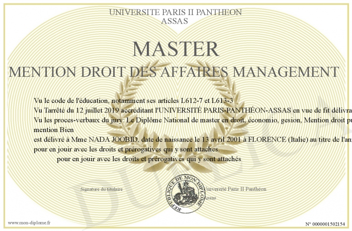 Envoyez par email votre Master mention Droit des Affaires Management personalisé