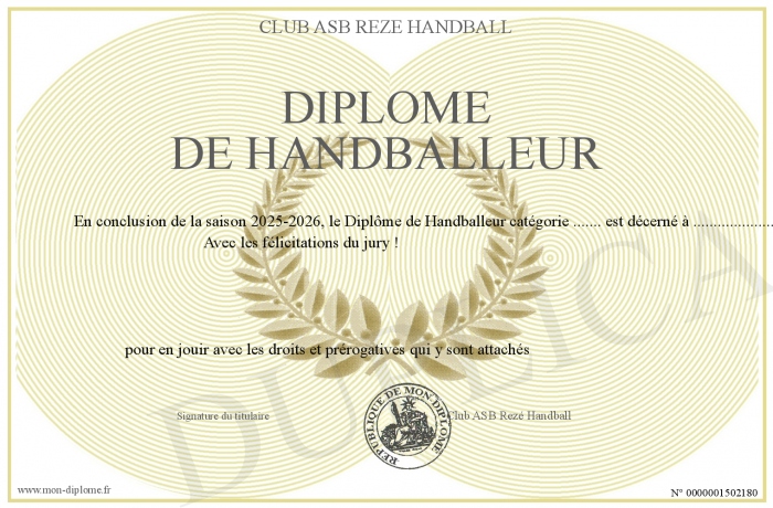 Envoyez par email votre Diplôme de Handballeur personalisé