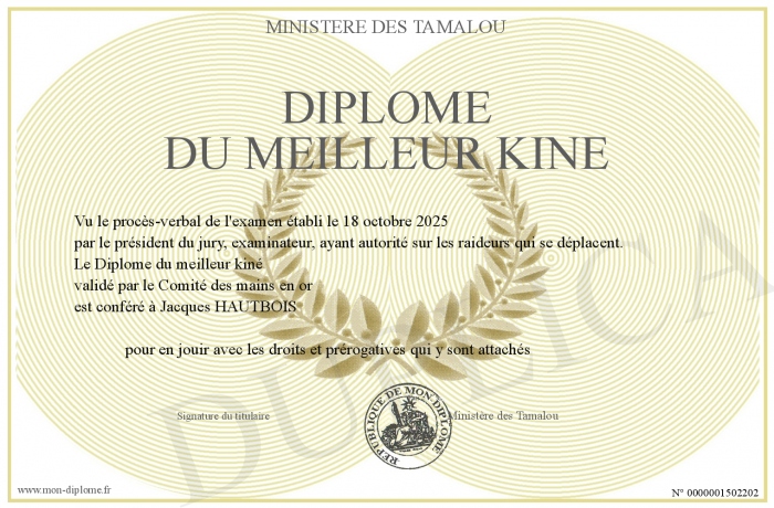 Envoyez par email votre Diplôme du meilleur kiné personalisé
