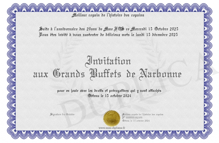 Envoyez par email votre Invitation aux Grands Buffets de Narbonne personalisé