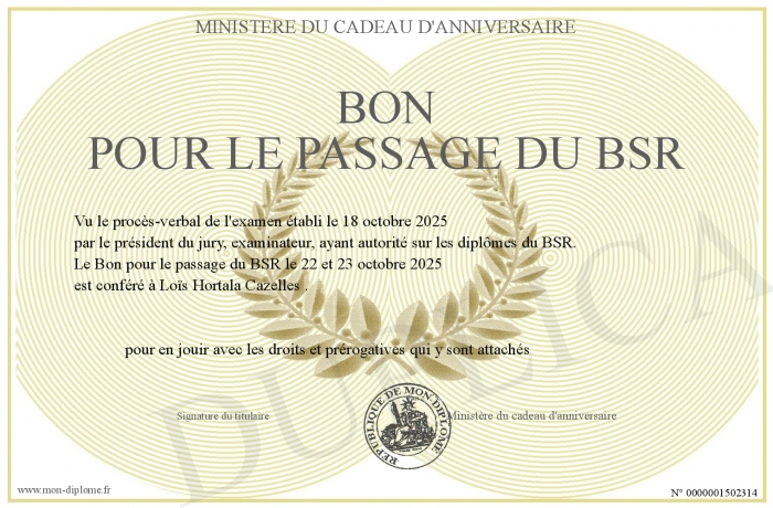 Envoyez par email votre Bon pour le passage du BSR personalisé