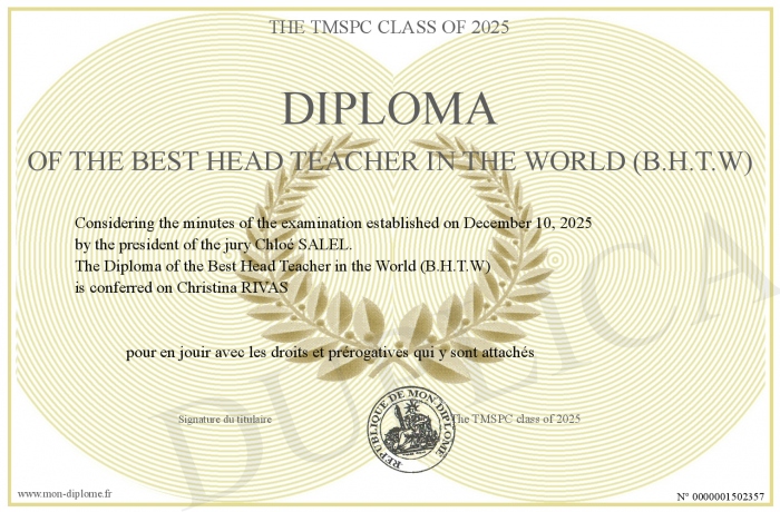 Envoyez par email votre Diploma of the Best Head Teacher in the World (B.H.T.W) personalisé