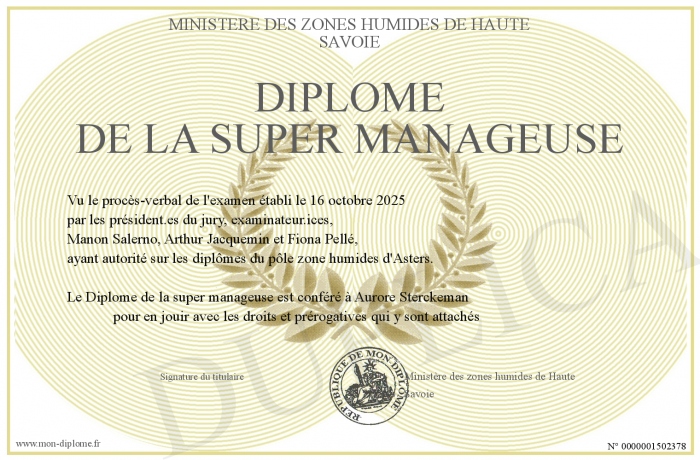 Envoyez par email votre Diplôme de la super manageuse personalisé