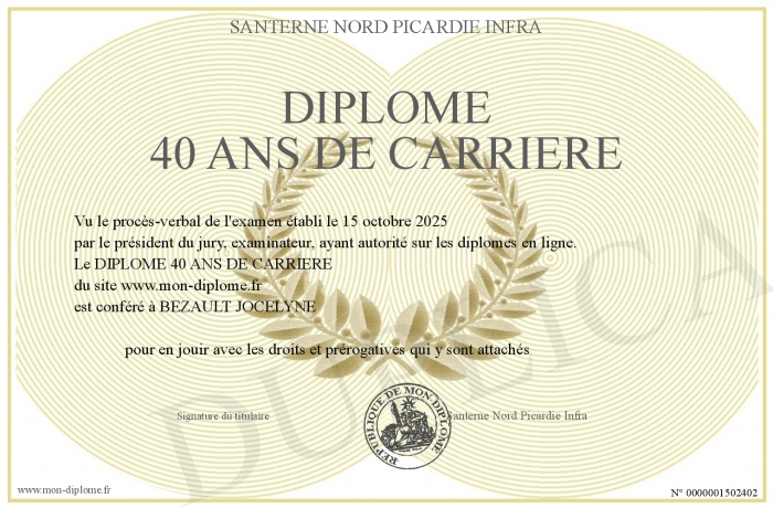 Envoyez par email votre DIPLOME 40 ANS DE CARRIERE personalisé