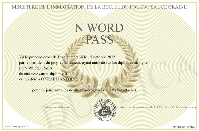 Envoyez par email votre N WORD PASS personalisé