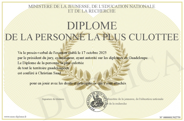 Envoyez par email votre Diplôme de la personne la plus culottée personalisé