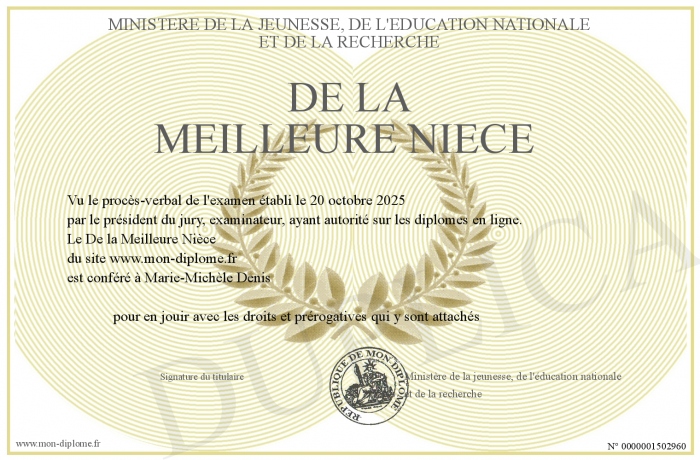 Envoyez par email votre De la Meilleure Nièce personalisé