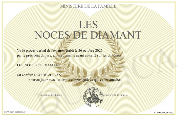Envoyez par email votre LES NOCES DE DIAMANT personalisé