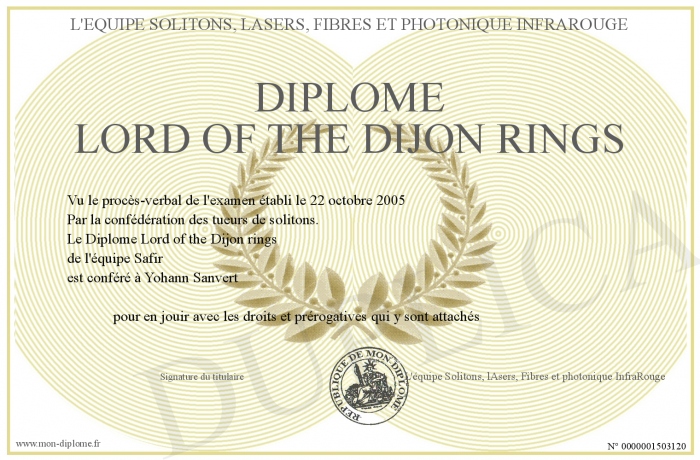 Envoyez par email votre Diplome Lord of the Dijon rings personalisé