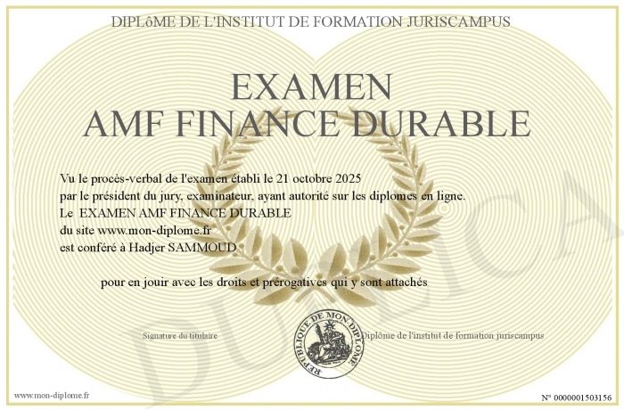 Envoyez par email votre EXAMEN AMF FINANCE DURABLE personalisé