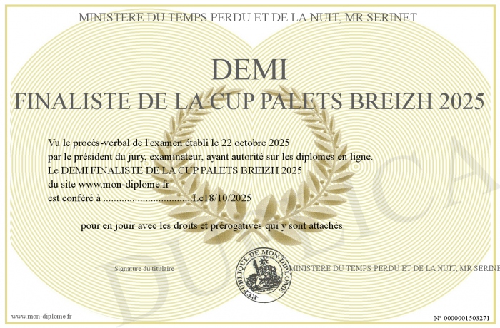 Envoyez par email votre DEMI FINALISTE DE LA CUP PALETS BREIZH 2025 personalisé