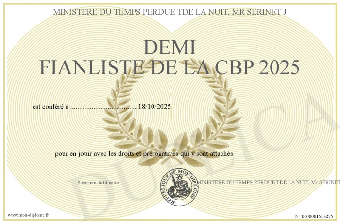 envoyé par le MINISTERE DU TEMPS PERDUE TDE LA NUIT, Mr SERINET J !