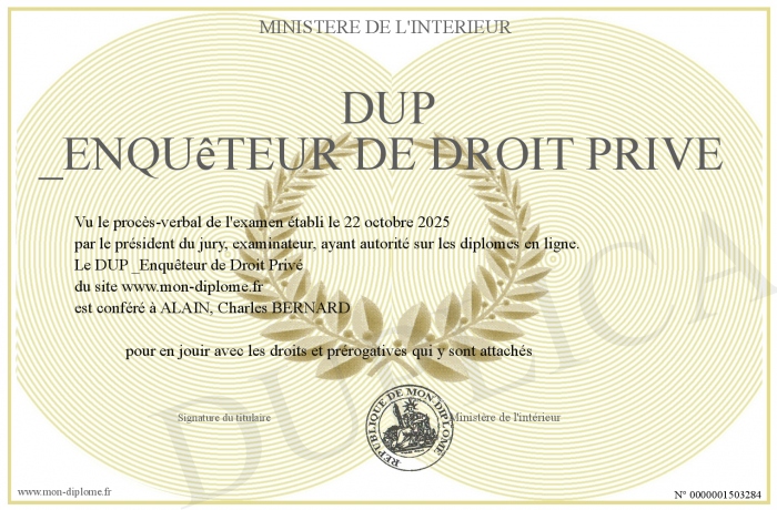 Envoyez par email votre DUP _Enquêteur de Droit Privé personalisé