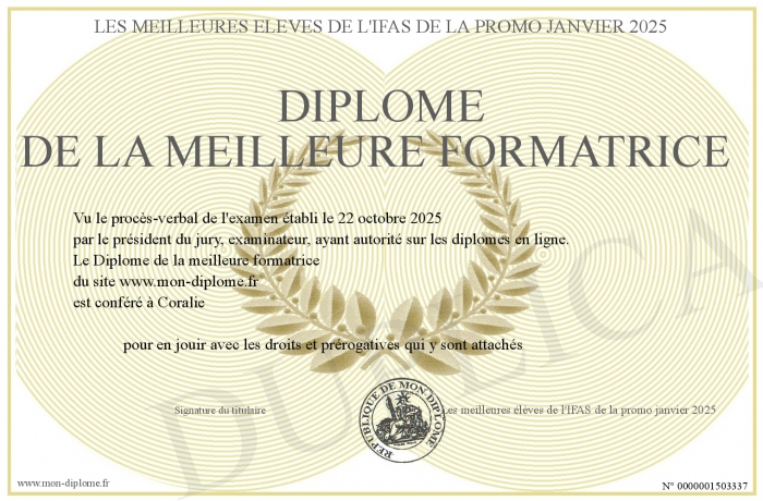 Envoyez par email votre Diplôme de la meilleure formatrice personalisé