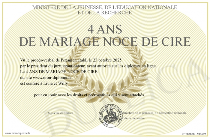 Envoyez par email votre 4 ANS DE MARIAGE NOCE DE CIRE personalisé