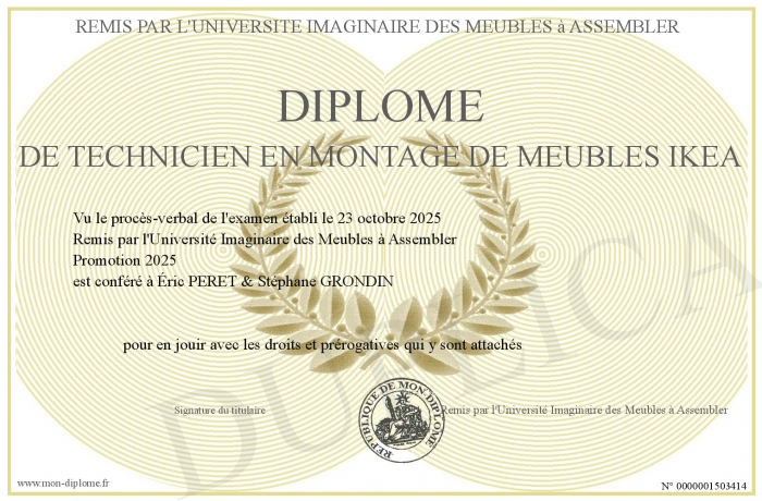 Envoyez par email votre Diplôme de technicien en montage de meubles IKEA personalisé