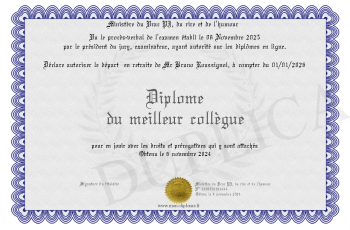 Envoyez par email votre Diplôme du meilleur collègue personalisé