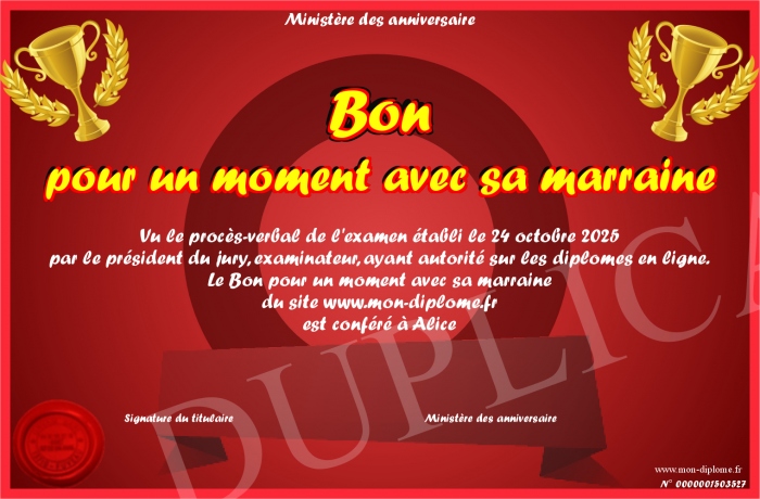 Envoyez par email votre Bon pour un moment avec sa marraine personalisé