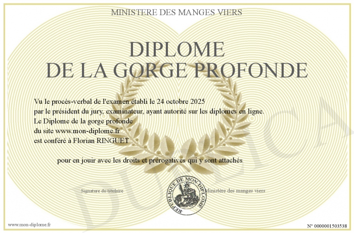 Envoyez par email votre Diplôme de la gorge profonde personalisé