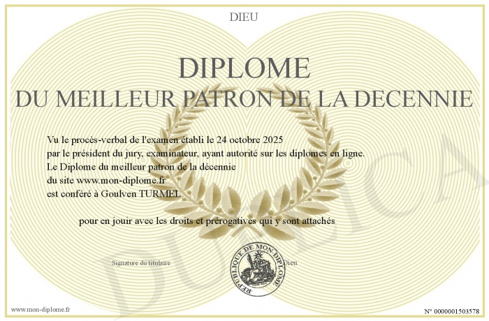 Envoyez par email votre Diplôme du meilleur patron de la décennie personalisé
