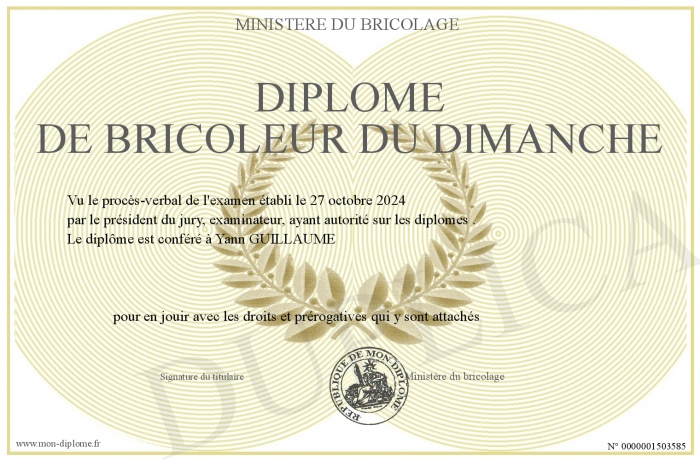 Envoyez par email votre Diplôme de bricoleur du dimanche personalisé