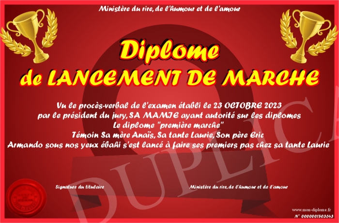 Envoyez par email votre Diplome de LANCEMENT DE MARCHE personalisé