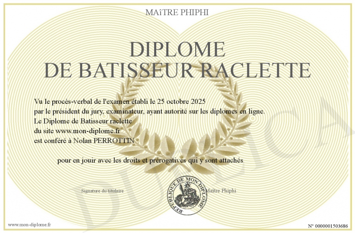 Envoyez par email votre Diplôme de Batisseur raclette personalisé