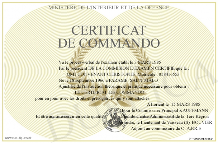 Envoyez par email votre certificat de commando personalisé