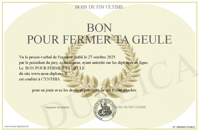 Envoyez par email votre BON POUR FERMER TA GEULE personalisé