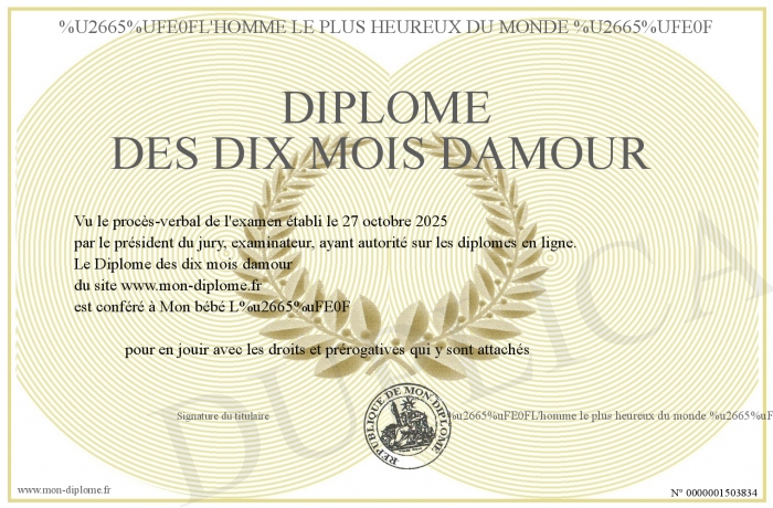 Envoyez par email votre Diplôme des dix mois damour personalisé