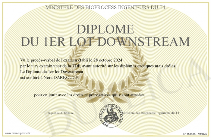 Envoyez par email votre Diplôme du 1er lot Downstream personalisé